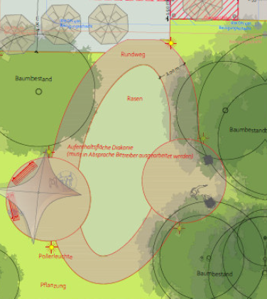 Direkt hinter unserem Haus befindet sich eine Gartenfläche von ca. 400 m², die wir gemeinsam mit unseren Nachbarn aus den beiden Wohngemeinschaften über und unter uns nutzen können. Die Diakonie Himmelsthür, als unsere Vermieterin, ermöglicht uns, diese Fläche in Absprache mit unseren Nachbarn zu gestalten. Dafür haben wir schon viele gute Ideen:
